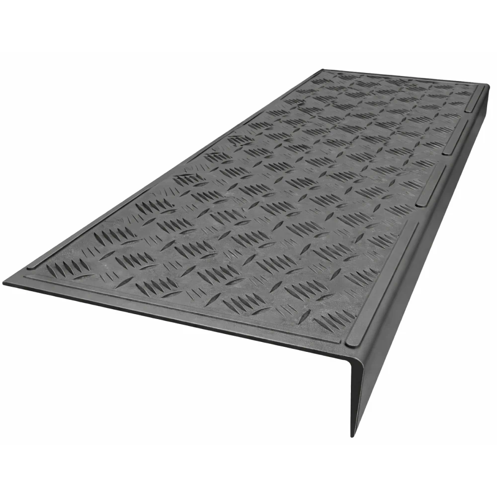 Резиновая накладка размером 750*305*71 мм серого цвета – это идеальное решение для того, чтобы защитить гранитные, мраморные и другие виды ступеней от падений. На поверхности проступи имеется специальный узор из неровностей, который не допускает скольжения. Такая накладка используется как в общественных учреждениях, так и в частных домах и позволяет полностью покрыть ступень, предотвращая возможное разрушение лестницы и механические повреждения.