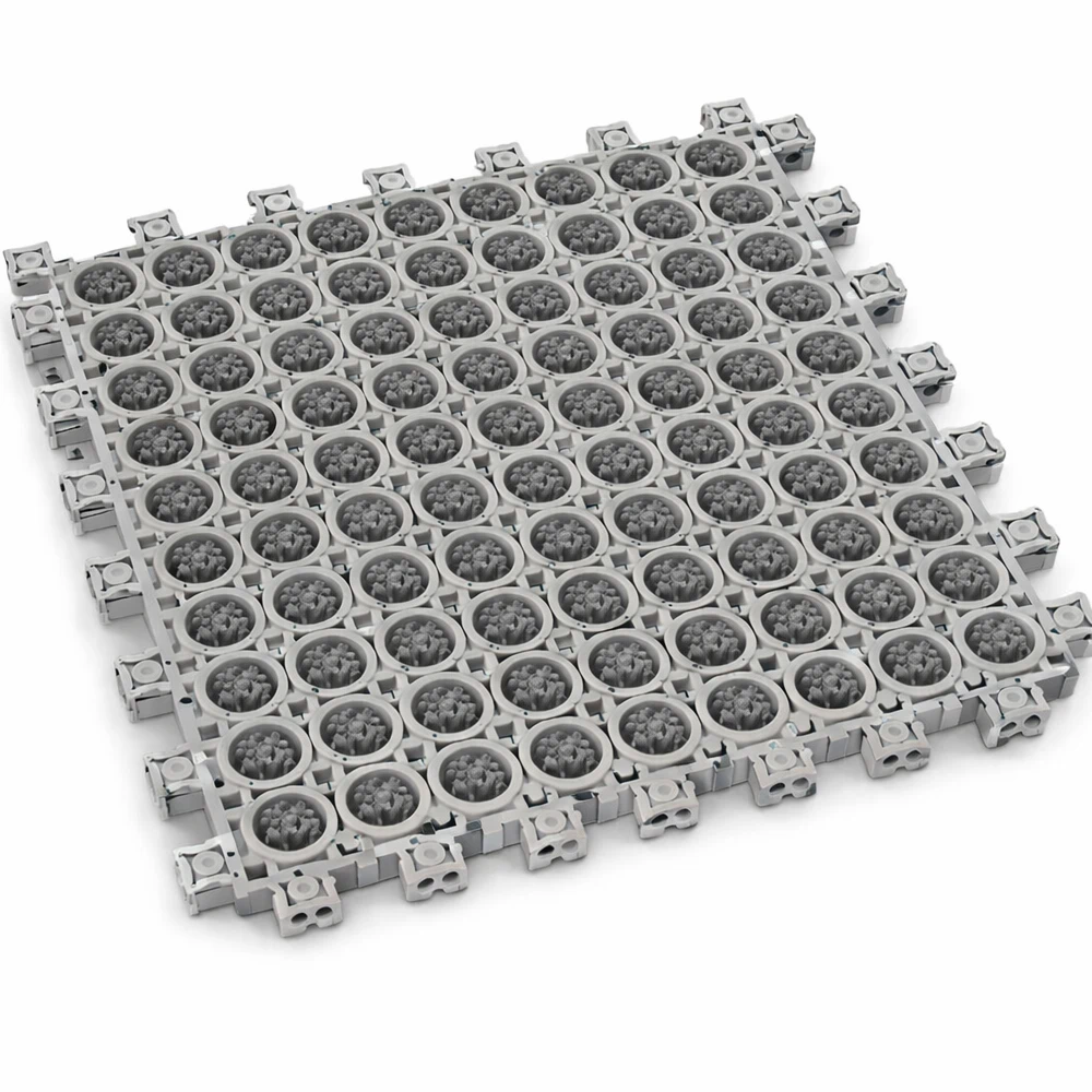 Покрытие «Антикаблук» из ПВХ размером 250*250*15мм серого цвета предназначено для монтажа на полу и ступенях лестниц с повышенным потоком пешеходов. Это грязезащитное решение безопасно для женской обуви и имеет повышенную износостойкость и устойчивость к агрессивным средам.