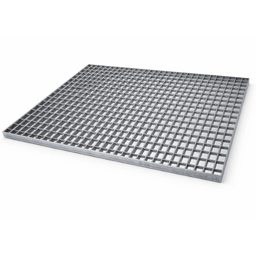 Решетка стальная размером 1200*1000*30мм производится методом прессования несущих и связывающих стальных полос. Антикоррозийная защита обеспечивается методом горячего оцинкования. Далее монтаж стальной решетки может выполняться с использованием пластикового или полимербетонного поддона, или же прямо в приямок.